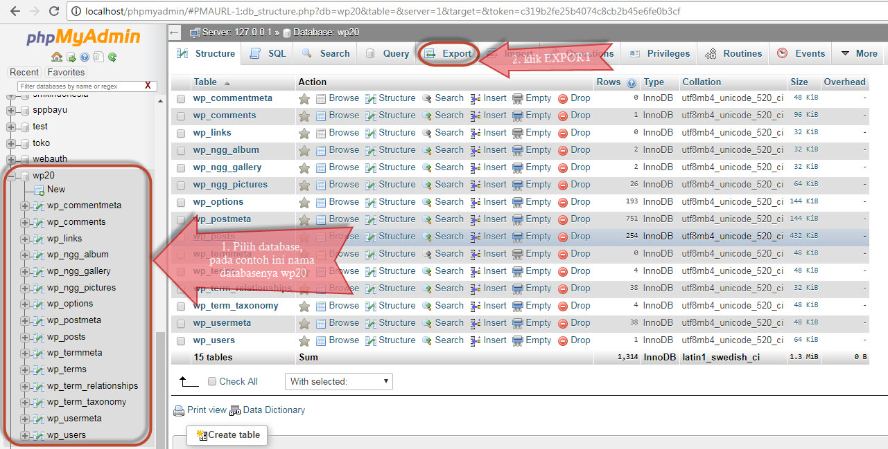 1 . Export database WordPress di local