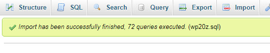 Jika tidak ada masalah, maka database akan berhasil di import/upload ke hosting. Kita bisa melihatnya dari pesan berhasil/success dan list table dari database akan muncul di sebelah kiri :