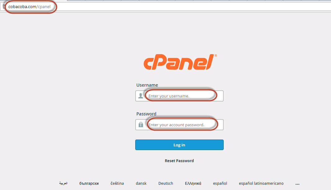 Masuk ke cPanel hosting kita, URL nya biasa nya adalah www.cobacoba.com/cpanel.