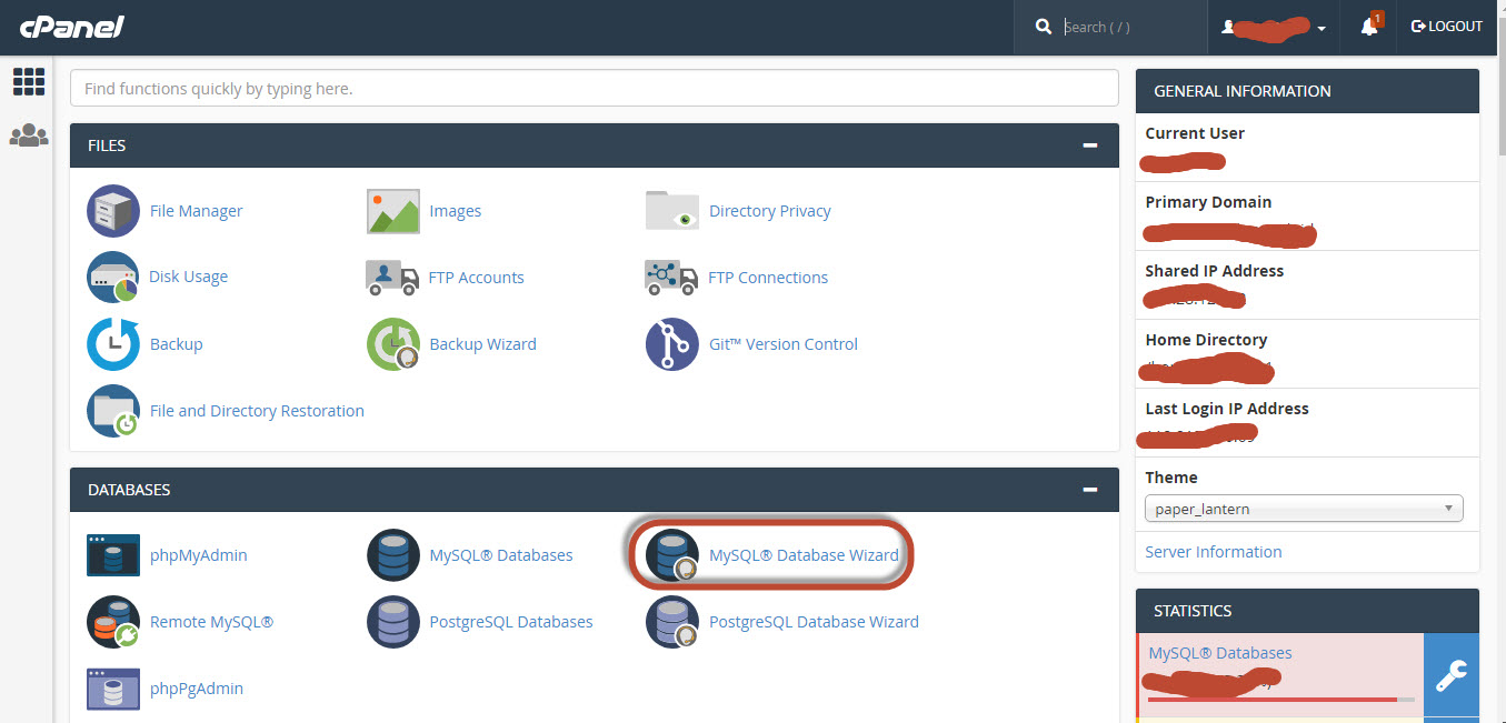 Setelah masuk cPanel, pilih MySQL Database Wizard, untuk mulai membuat database baru di cPanel :