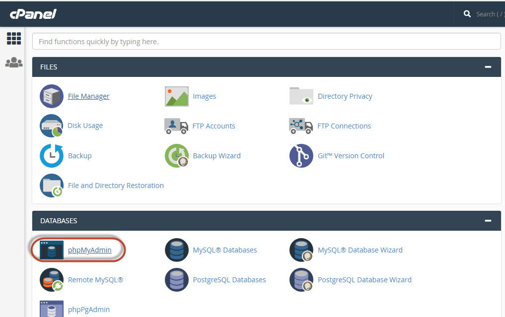 Kembali ke halaman depan cPanel, lalu klik PhpMyAdmin. Tampilan PhpMyAdmin di cPanel dan localhost biasanya sama.