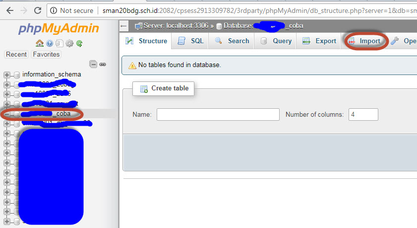 3. Import/migrasi database ke hosting