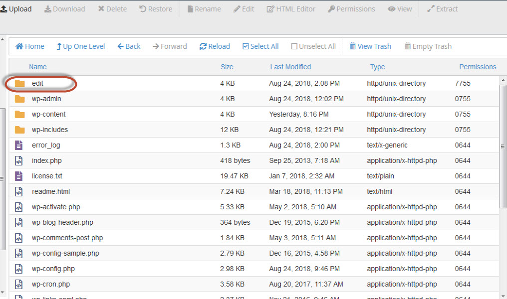 Setelah berhasil di download, extract file .zip nya dan upload folder nya ke direktori root WordPress yang ada di hosting. Nama folder search & replace tersebut bisa kita ubah agar lebih mudah di akses, contoh yang saya buat dengan nama folder edit. Penenpatan foldernya harus sejajar dengan folder root wordpress, seperti gambar berikut ini :
