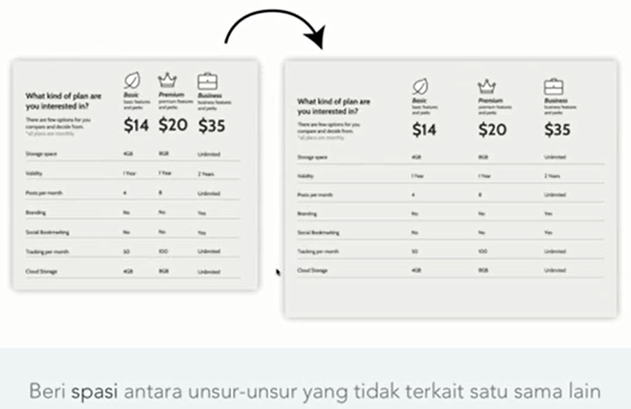 penambahan ikon pada beberapa elemen - Menggunakan ruang negatif (white space)