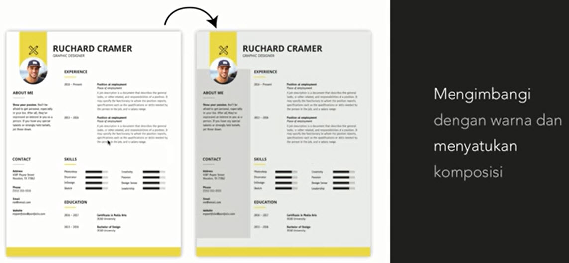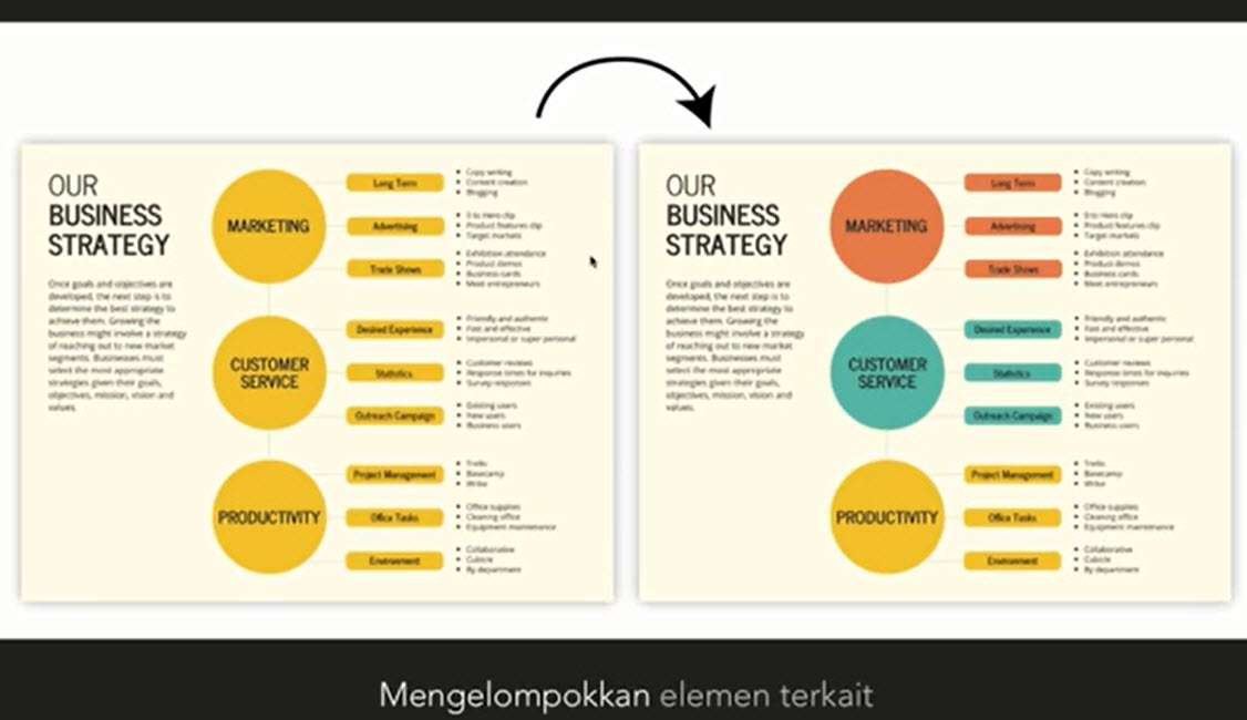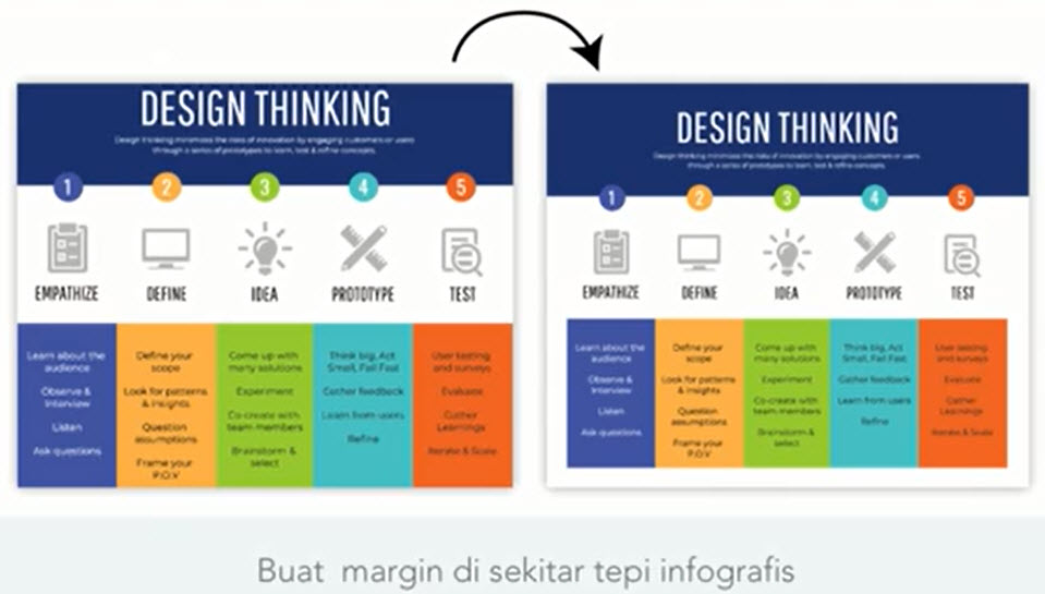 - Gunakan pengulangan, konsistensi dan keselarasan dalam infografis : tambahkan beberapa elemen grafis untuk memberi komposisi yang seirama dan visual yang menarik