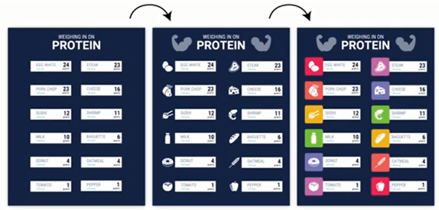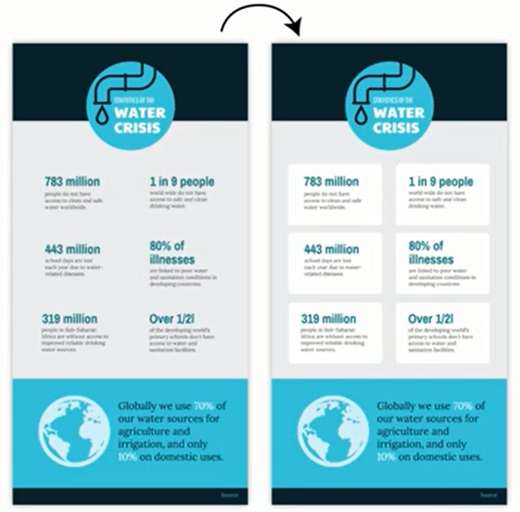 - Gunakan pengulangan, konsistensi dan keselarasan dalam infografis : tambahkan beberapa elemen grafis untuk memberi komposisi yang seirama dan visual yang menarik