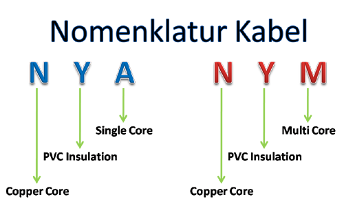 Contohnya seperti NYA 1 x 1,5mm² atau NYM 2 x 1,5mm²