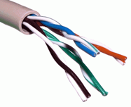 - Kabel UTP (Unshielded Twisted Pair) yang banyak digunakan dalam instalasi jaringan komputer. Kabel ini berisi 4 pasang kabel yang tiap pasangnya dipilin (twisted). Kabel ini tidak dilengkapi dengan pelindung (unshilded). Kabel UTP mudah dipasang, ukurannya kecil, dan harganya lebih murah dibandingkan jenis media lainnya. Kabel UTP sangat rentan dengan efek interferensi elektris yang berasal dari media di sekelilingnya.