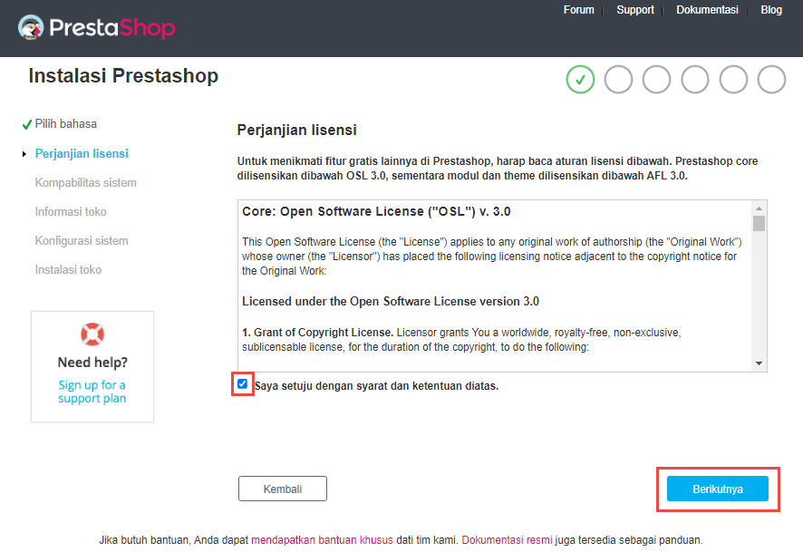 6. Ceklis “I Agree to the above terms and conditions” / “Saya setuju dengan syarat dan ketentuan di atas”, lalu klik Berikutnya