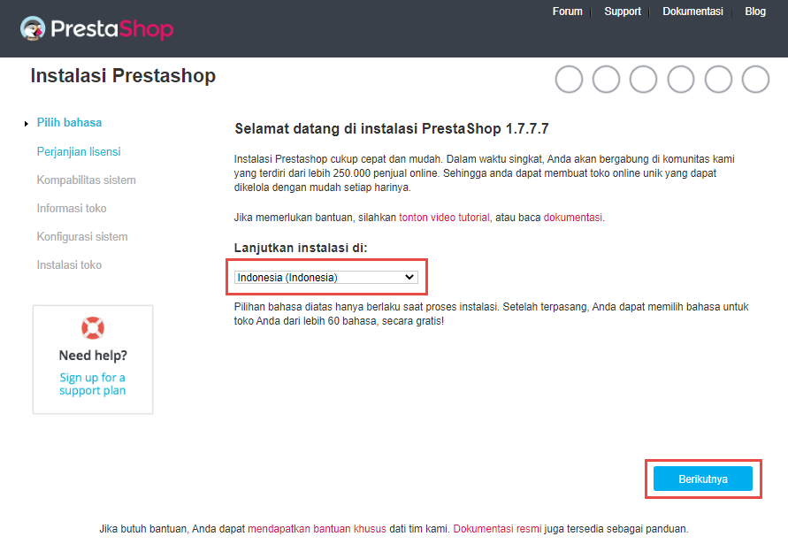 5. Pilih bahasa, contoh : Indonesia, lalu klik Berikutnya