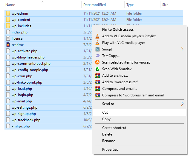 Buat folder baru di dalam folder htdocs (C:\xampp\htdocs) misal dengan nama wpblog. Setelah proses download pada step sudah berhasil, selanjutnya kita perlu me-extract file wordpress bertype zip tersebut. Pindahkan semua file dan folder dalam folder yang sudah di ekstrak tadi direktori/folder yang baru kita buat tadi (C:\xampp\htdocs\wpblog).