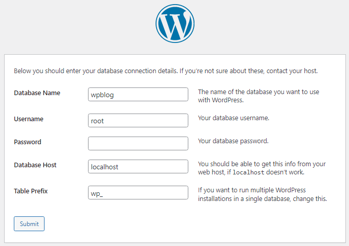 Pada saat wordpress di localhost ini di upload ke server hosting, kita perlu menyesuaikan kembali database config yang telah kita isikan ini.