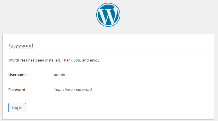 Lanjutkan dengan menekan tombol Install WordPress dan tunggu sampai proses installasi selesai.