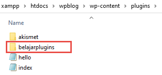 Buat folder baru di /wp-content/plugins/, misal dengan nama belajarplugins. Buat file PHP di dalam folder yang sudah kita buat, isi file tersebut dengan kode berikut :