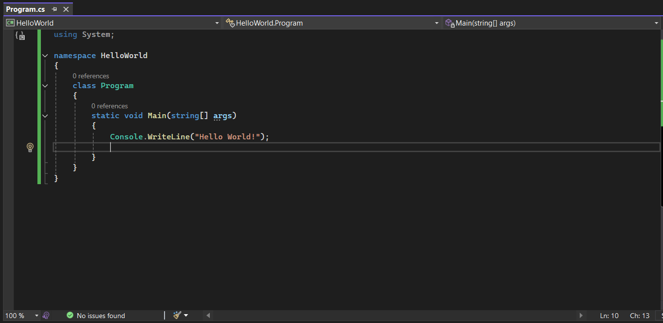 Console.WriteLine("Hello World!");