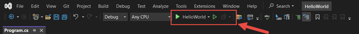 using System; namespace HelloWorld { class Program { static void Main(string[] args) { Console.WriteLine("Hello World!"); Console.ReadLine(); } } } - Kemudian klik tombol Start atau F5 untuk melakukan compile dan run.