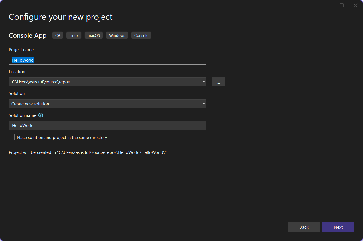 Setiap project yang kita buat di Visual Studio akan tersimpan di folder C:\Users\username\source\repos.