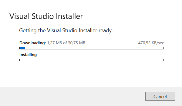 - Berikutnya, Visual Studio Installer akan men-download Visual Studio dan melakukan instalasi. Tunggulah sampai prosesnya selesai.