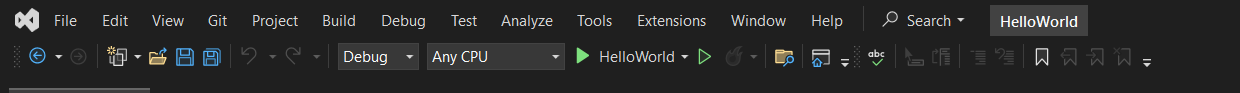 Menubar adalah menu yang kita gunakan untuk mengakses semua fitur di Visual Studio. Lalu di bawah Menubar ada Toolbar yang merupakan sekumpulan ikon untuk melakukan aksi tertentu seperti copy, paste, build project, undo, redo, dll.