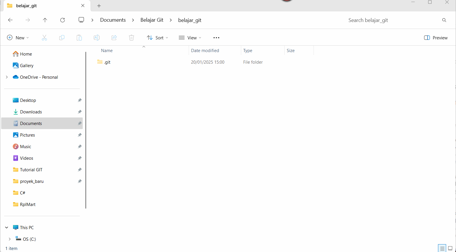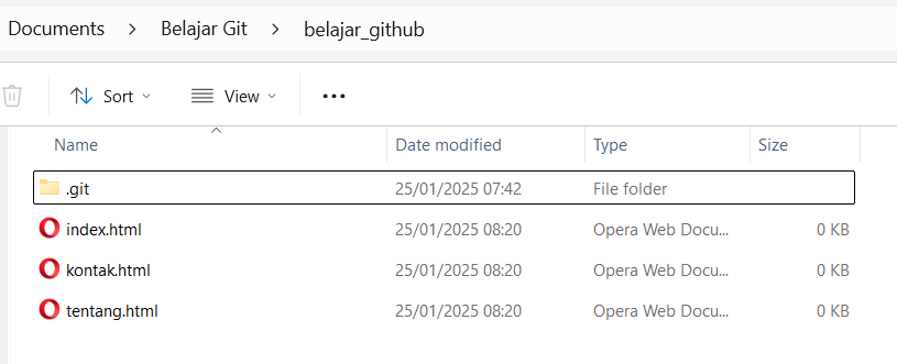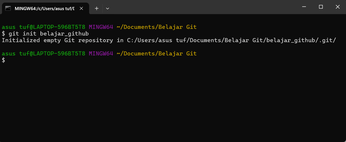 Maka di dalam folder Document/Belajar Git/ akan terbuat folder/repository belajar_github, dan di dalam folder tersebut aka terbentuk folder .git .