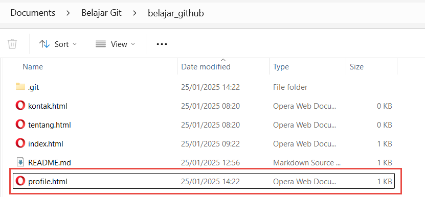 Jika berhasil file profile.html akan tersimpan di folder/repository lokal