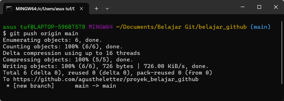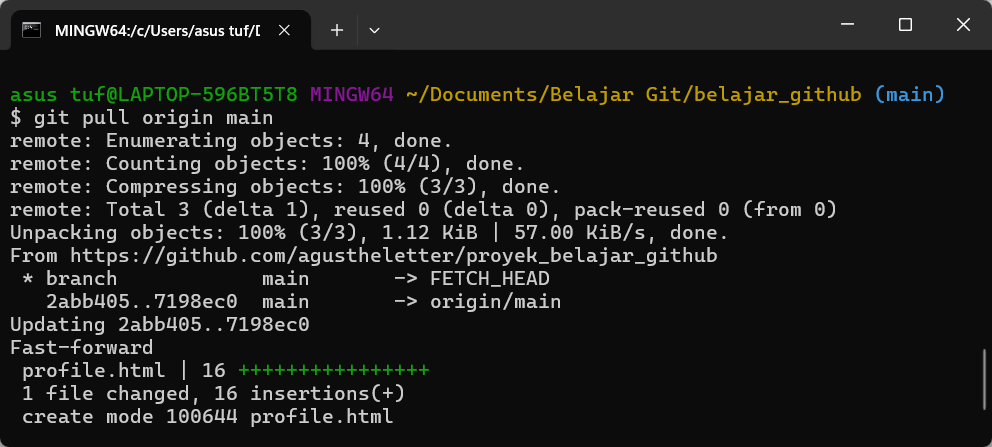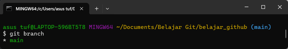 Terlihat pada contoh di atas branch lokal yang ada bernama main.