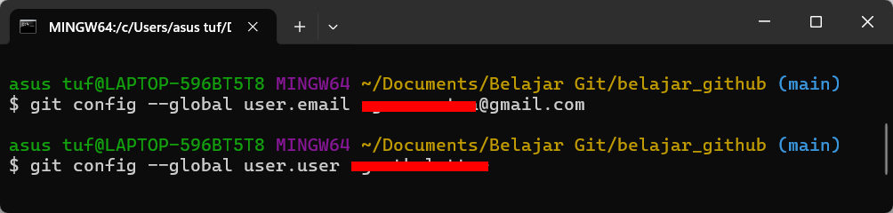 - Selanjutnya lakukan konfigurasi antara git dengan akun github yg telah dibuat dengan menulis perintah :