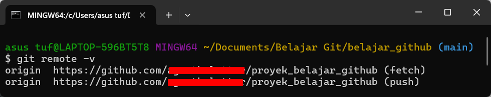 - Setelah melakukan semua langkah di atas, kita verifikasi/cek ulang daftar remote :