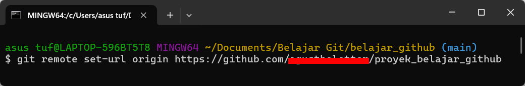 sudah ada tetapi menggunakan URL yang salah, kita bisa memperbaruinya :git remote set-url origin https://github.com/namauser/namaproyek